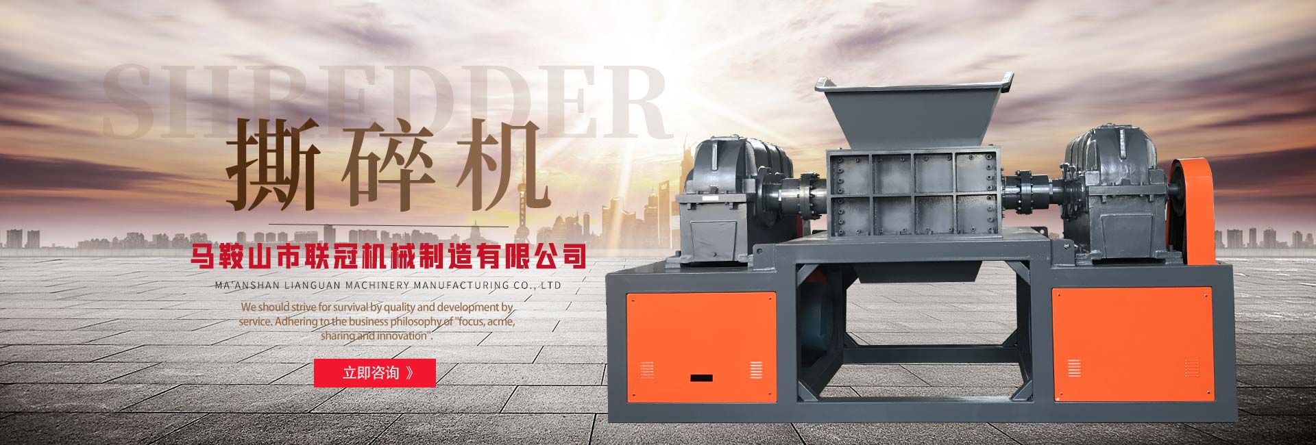 馬鞍山市聯冠機械制造有限公司致力于通過科技創新達到環境保護,為地球“制造氧氣”的目的。長期以來,我們堅守此宗旨,汲取先進理念,致力于設計、研發、生產實用,的環保、廢舊物料再生設備。馬鞍山市聯冠機械制造有限公司主要產品包括:生活垃圾預處理系統、大件垃圾回收處理系統、金屬廢棄物(汽車摩托車外殼、壓塊、鐵屑)處理系統、廚余垃圾預處理系統、廢舊輪胎回收處理系統、廢舊電子電器回收處理系統、廢舊塑料回收處理系統等。馬鞍山市聯冠機械制造有限公司在確保產品品質和完善的海外服務基礎上,公司經過長期戰略布局,并且積極進軍國外市場。面對經濟快速發展提供的機遇,聯冠機械始終依靠提供更好的產品和完善的服務來追求客戶滿意,從而實現企業的價值!另一方面,我們堅信科技推動了人的觀念和機械的效率共同進步。規避行業發展的劣勢、探求機械制造與人類文明結合是我們永遠的動力。馬鞍山市聯冠機械制造有限公司以質量求生存、以服務求發...